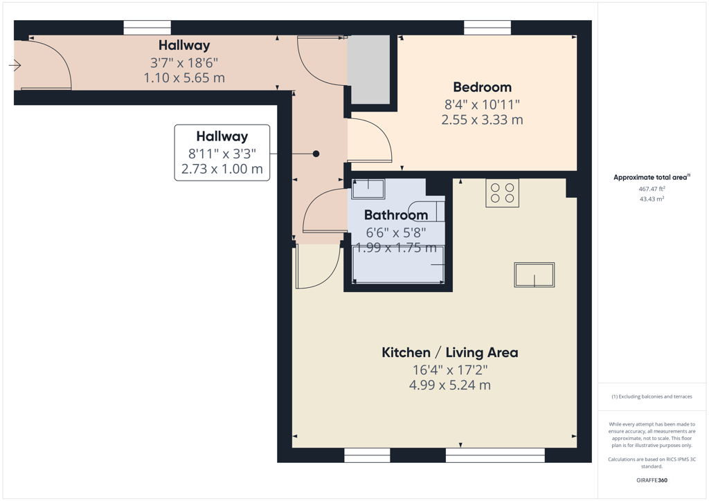 Sizeable with natural light from both aspects it comprises; long entrance hallway, 1 double bedroom, bathroom, living area open plan to a well stocked fitted kitchen with integrated appliances to include dishwasher, washer, fridge and cooking appliances. It really is that well equipped to move in.