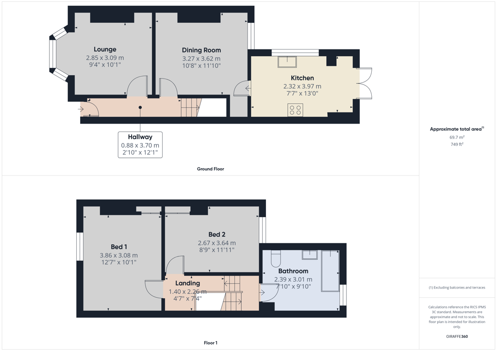 There are 2 double bedrooms and a large bathroom on the first floor. The ground floor has an entrance hall, 2 separate reception rooms and a modern fitted kitchen with built in cooking appliances and double doors out to the garden. Gas central heating and double glazing are throughout.