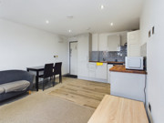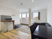 It has an abundance of natural light from it's wall of windows. Compact, yet with a light and airy feel, it's finished to a high standard with modern fitments throughout. Access from the communal area leads to a private entrance hallway, in turn accessing the apartment. Open plan, to enhance the sense of space, it has a modern fitted kitchen with integrated appliances incorporated within the living area. Beyond lies the shower room with a modern suite and the double bedroom. Double glazing and heating are throughout.