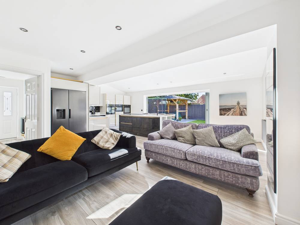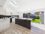 Extended to the rear, the house now has a fantastic living kitchen area with a central island, bi fold doors and skylights. With a quality fitted kitchen housing a host of integrated appliances plus separate dining and seating areas, it's ideal for the growing family. Usefully there's also a separate utility and cloakroom.