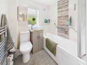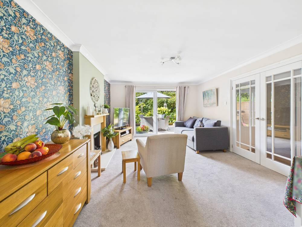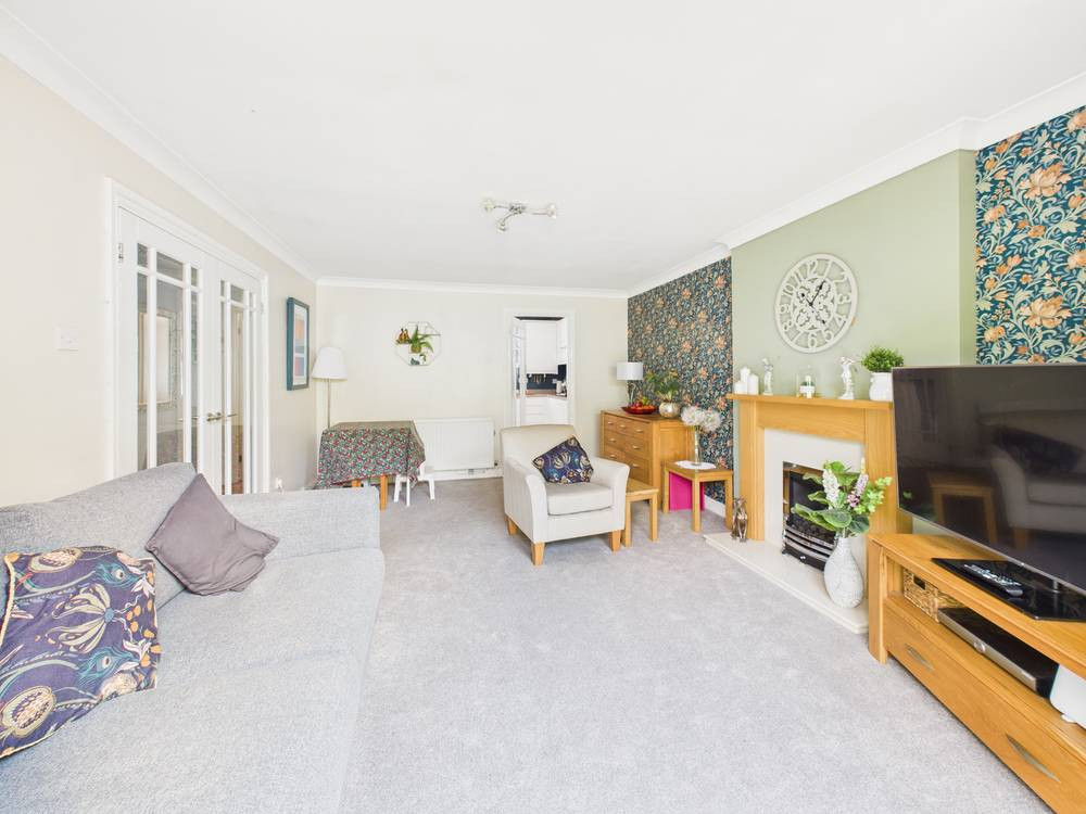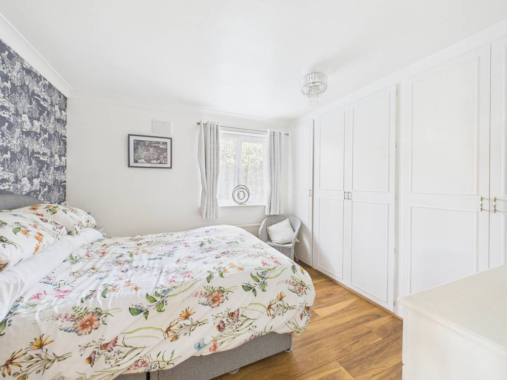 There are 2 bedrooms, a main double room with a wall of fitted wardrobes and smaller second, brilliantly used by the current owners as a dressing room. The lounge is spacious with patio doors out to the westerly garden. Both the bathroom and kitchen have been refitted, the latter having built in appliances. Gas central heating and double glazing are throughout.