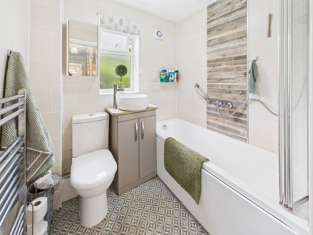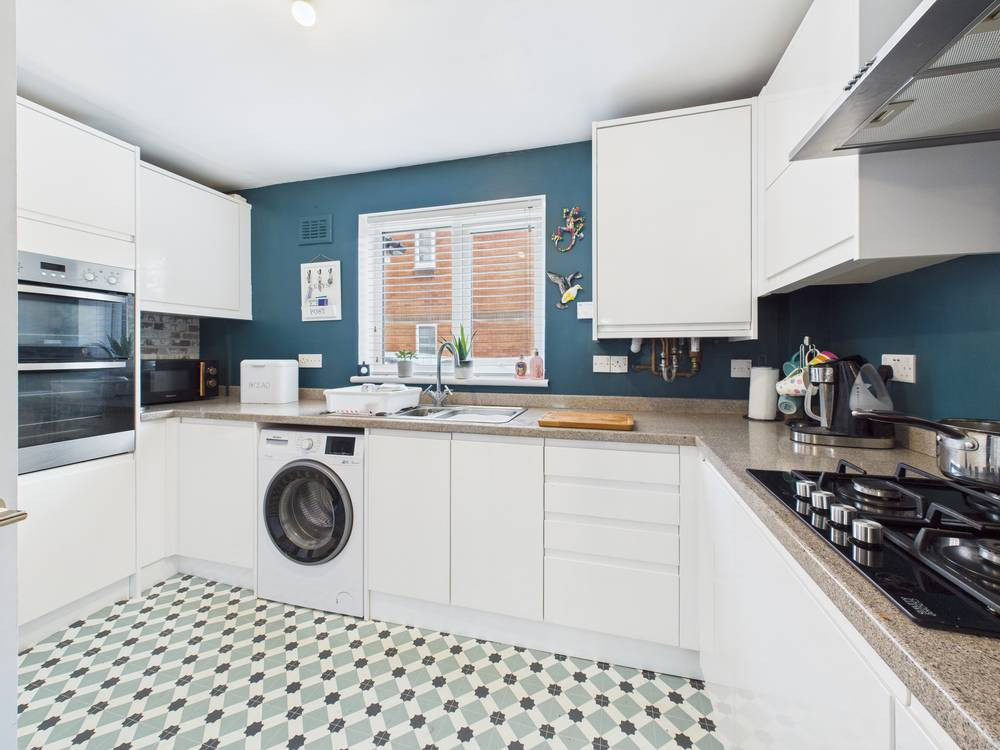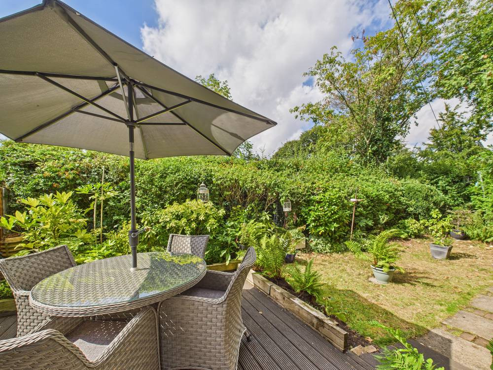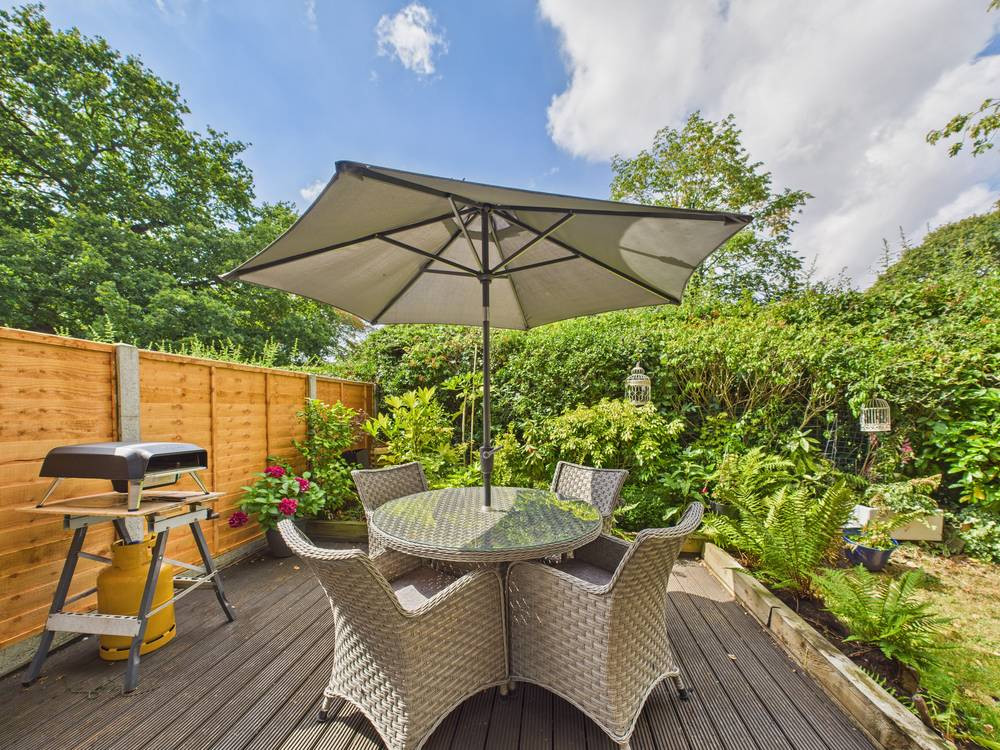Outside there is parking to the front and a brick garage. Additional visitor parking is approx 20 metres away. The garden to the rear is well screened by hedging and backs onto grassland. Ideal for those summer evenings it's a lovely area with decked seating and a small lawn.